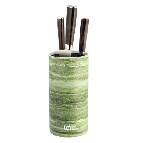 Устойчивая подставка для ножей LARA – это современный и практичный кухонный аксессуар для бережного хранения ножей и ножниц. Подставка круглой формы удобна и безопасна в использовании. Оригинальное и стильное цветовое решение дополнит интерьер современной кухни. Разборная конструкция обеспечивает легкую очистку и гигиеничность. Для изготовления корпуса был выбран безопасный полипропилен с прорезиненным покрытием Soft-touch, которое устойчиво к царапинам. Экологичный пластиковый наполнитель в виде специальных упругих волокон позволяет надежно зафиксировать ножи всех типов с длиной лезвия до 25 см, сохраняя их остроту. Допускается использование посудомоечной машины.