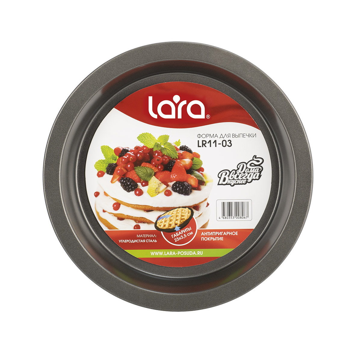 Круглая форма для выпекания LARA с гладким краем – это оптимальный вариант для повседневного использования в духовом шкафу. Корпус выполнен из прочной и экологически чистой углеродистой стали с устойчивым антипригарным покрытием. За счёт высокого борта приготовление традиционной лазаньи, пирогов с ягодной или фруктовой начинками станет любимым домашним занятием. Блюдо подрумянится как надо, не подгорит и Вы легко извлечёте готовый продукт из формы или оставите в ней для хранения в холодильнике. Простой уход с возможностью мыть в посудомоечной машине добавляют плюсов к выбору этого кухонного аксессуара.