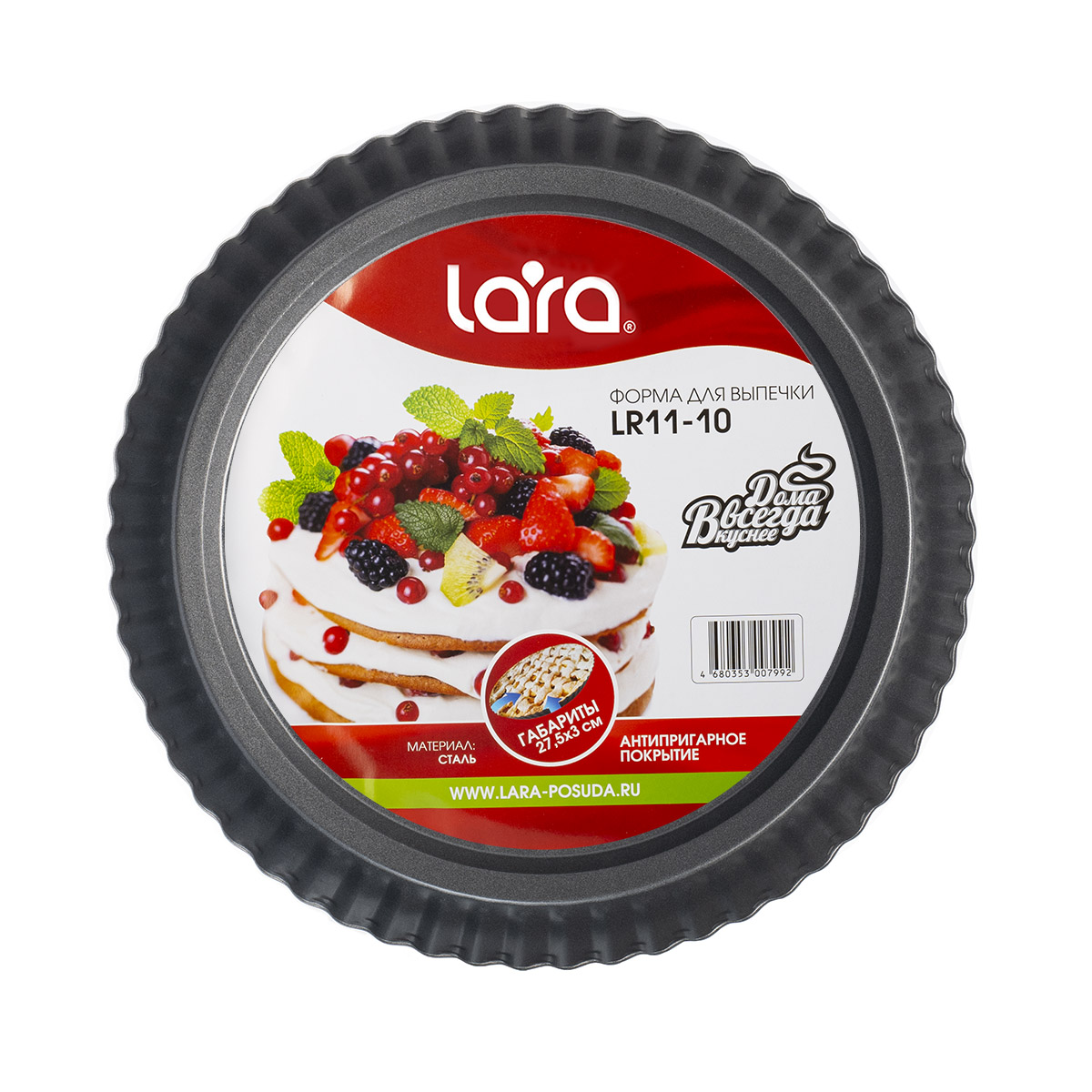 Круглая форма для выпекания LARA с волнистыми краями – это отличный вариант для частого использования. Мы подобрали экологически чистые материалы: прочную углеродистую сталь и прочное антипригарное покрытие, обеспечивающие оптимальное распределение тепла по всей поверхности. Прекрасно подходит для приготовления шарлотки, тыквенного пирога или манчестерского торта, а почему бы и нет. Тесто подрумянится, не пригорит и вы с лёгкостью извлечёте готовый продукт из формы или оставите в ней для хранения в холодильнике. Простой уход с возможностью мыть в посудомоечной машине добавляют плюсов к выбору этого кухонного аксессуара.