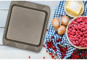 Форма из углеродистой стали с рифленой поверхностью. Большие удобные ручки. Антипригарное покрытие и текстурированное дно позволяют легко извлекать выпечку. Легко чистить после использования