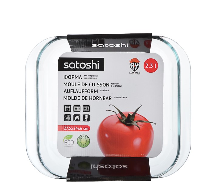 SATOSHI Стеклянная форма для запекания жаропрочная квадратная, с ручками, 27.5x24x6см, 2,3л