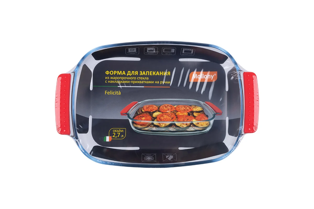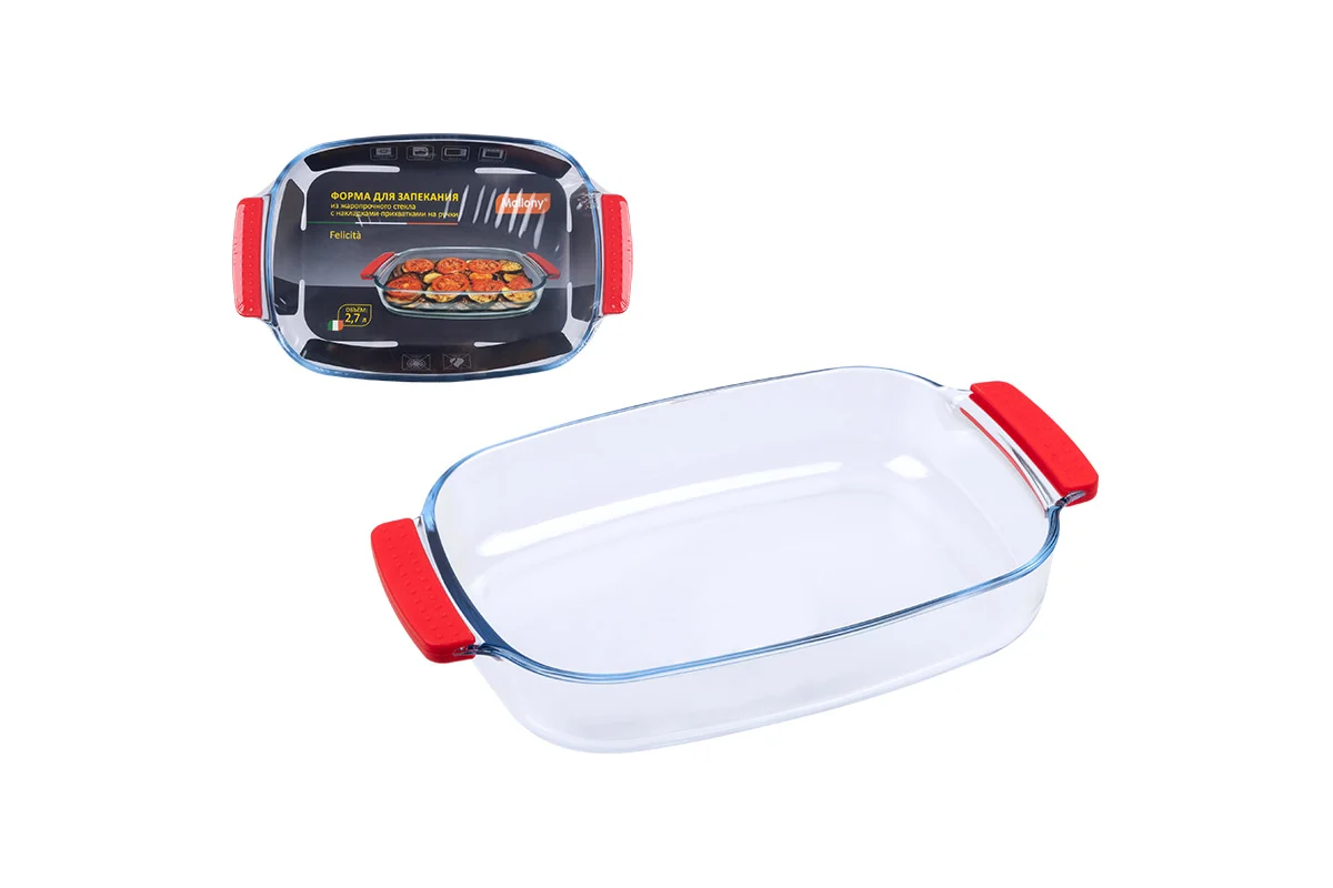 Форма для запекания Felicita, объём: 2,7 л, с силиконовыми накладками-прихватками на ручки, жаропрочное стекло, прямоугольной формы.