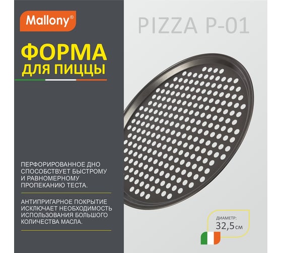 Дополнительные характеристики формы для пиццы Mallony PIZZA P-01 диам 32.5 см 008571:
