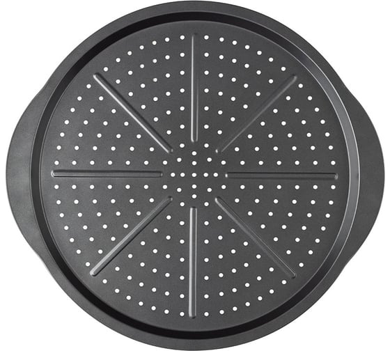 Форма для пиццы Mallony PIZZA P-02 диаметр 33 см для удобства использования снабжена ручками. Перфорированное дно обеспечивает более быстрое и равномерное пропекания теста. Антипригарное покрытие исключает необходимость использования большого количества масла.