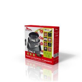 Набор для выпечки ZEIDAN 3 предмета. «Сердце» - 24х23,5х6,8см, «круглая» - ?18х7см, «квадратная» -26х26х7 см, углеродистая сталь, внутреннее И внешнее каменное покрытие «GRANITE», подарочная упаковка.