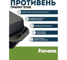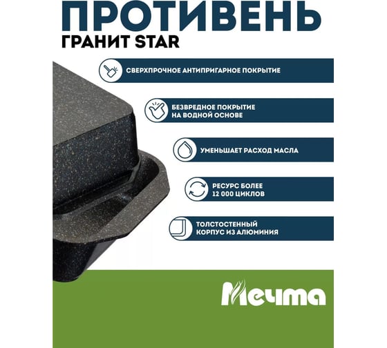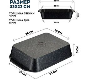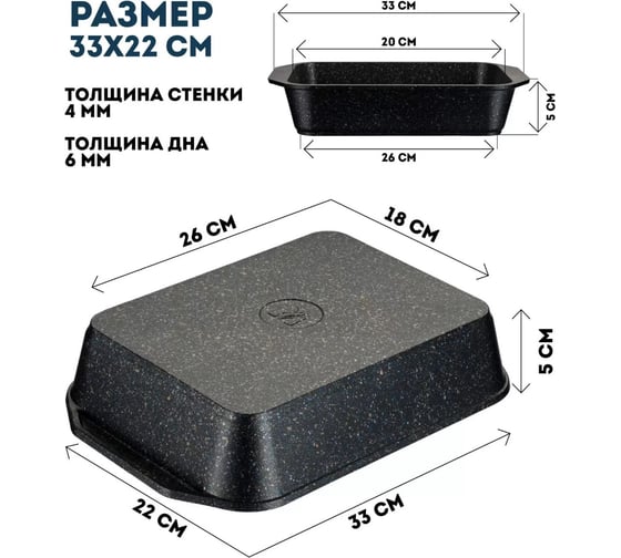 Толстостенный противень из литого алюминия 22х33 см серии Гранит Black с антипригарным покрытием повышенной стойкости, разработанным фирмой Weilburger Coatings GmbH. Покрытие разработено на водной основе и не содержит перфтороктановую кислоту. Благодаря слою, упроченному кристаллами минералов, покрытие отличается особой износостойкостью и отличными антипригарными свойствами.