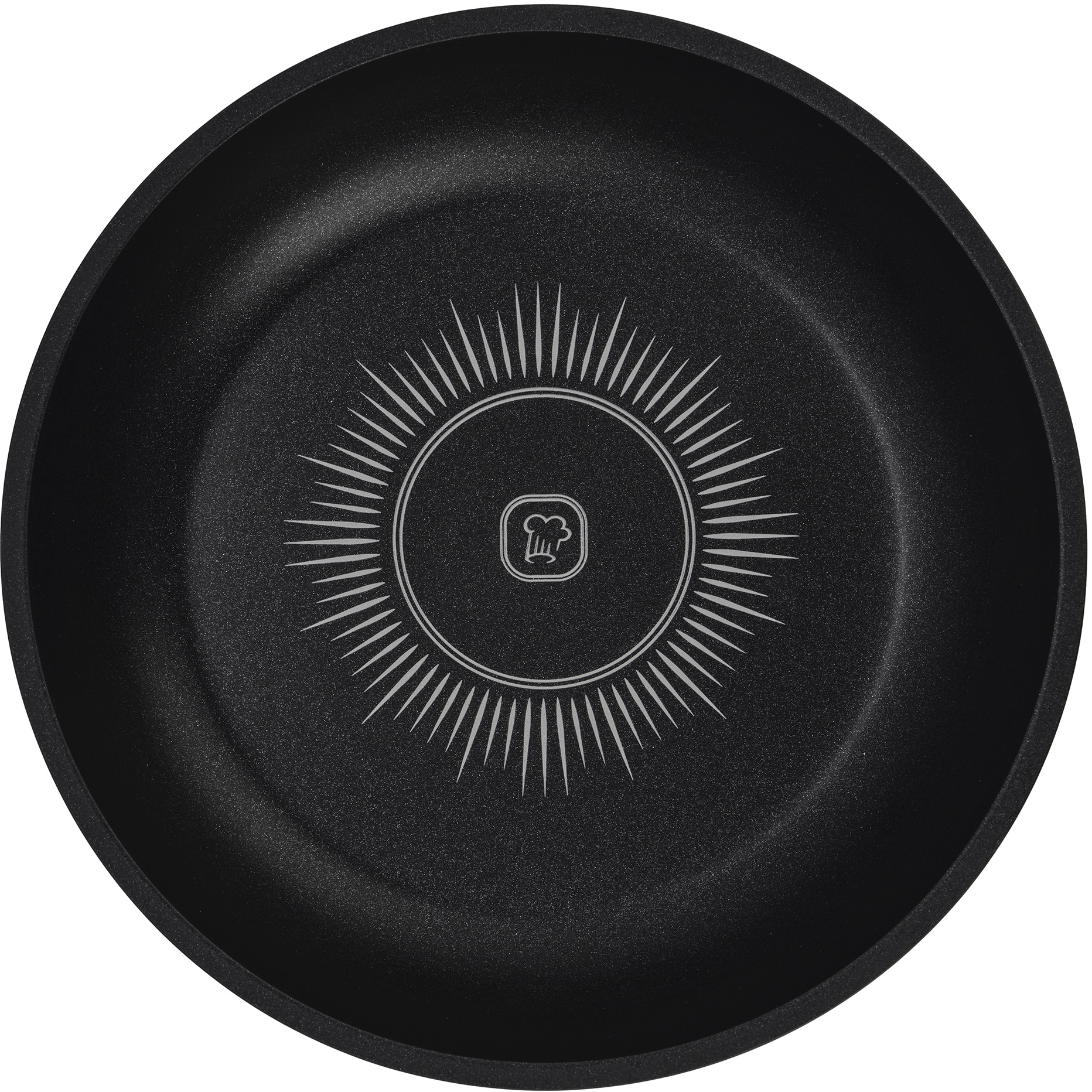 Материал: утолщенный кованый алюминий. Внутреннее покрытие: Xylan® Plus - антипригарное покрытие. Толщина стенок: 2,2 мм. Толщина дна: 2,2 мм. Аксессуары: съемная надежная бакелитовая ручка. Преимущества: принт на внутренней поверхности сковороды усиливает свойства антипригарного покрытия на 15%.
