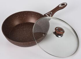 24см (2,5/3мм), высота 6,5 см, внутри 3-х слойное мраморное антиприг. покрытие с рельефом , снаружи: 3-х слойное жаропрочн. мраморное покрытие.Ручка с покрытием soft touch в цвет сковороды, крышка стеклянная. Подходит для использов. на индукционной плите. Не подходит для посудомоечной машины. Состав: кованый алюминий.