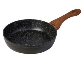 Диаметр 26см. Внутри мраморное антипригарное покрытие с рельефом, снаружи жаропрочное покрытие. Бакелитовая ручка с покрытием Soft Touch "под дерево". Толщина стенки 2,5мм, дна 3,5мм, высота 6,3см. Подходит для индукц.плит и чистки в посудомоечной машине. Состав: кованый алюминий.