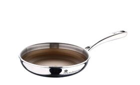 Сковорода GIRO GOLD – изготовлена из нержавеющей стали и кованого алюминия. Нержавеющая сталь — одна из лучших альтернатив индукционным сковородам для поваров, поскольку она исключительно долговечна. Равномерное распределение тепла по дну и бокам благодаря технологии Induction Ultra Turbo, которая нагревает сковороду на 20% быстрее, чем традиционные индукционные сковороды и сковорода достигает идеальной температуры для приготовления за очень короткое время, что позволяет готовить пищу намного быстрее и без использования масла. Посуда имеет долгий срок службы при правильном уходе, не теряя своих антипригарных свойств и обладая высокой устойчивостью к царапинам, коррозии и окислению. Желательно мыть вручную. Антипригарное покрытие ILAG ULTIMATE- многослойное антипригарное покрытие с керамическим усилением, что обеспечивает высокие антипригарные качества, долговечность и надежность в использовании. Ручка не проводит тепло благодаря технологии охлаждающего эффекта и крепится к кастрюле заклепками, а не обычными винтами.