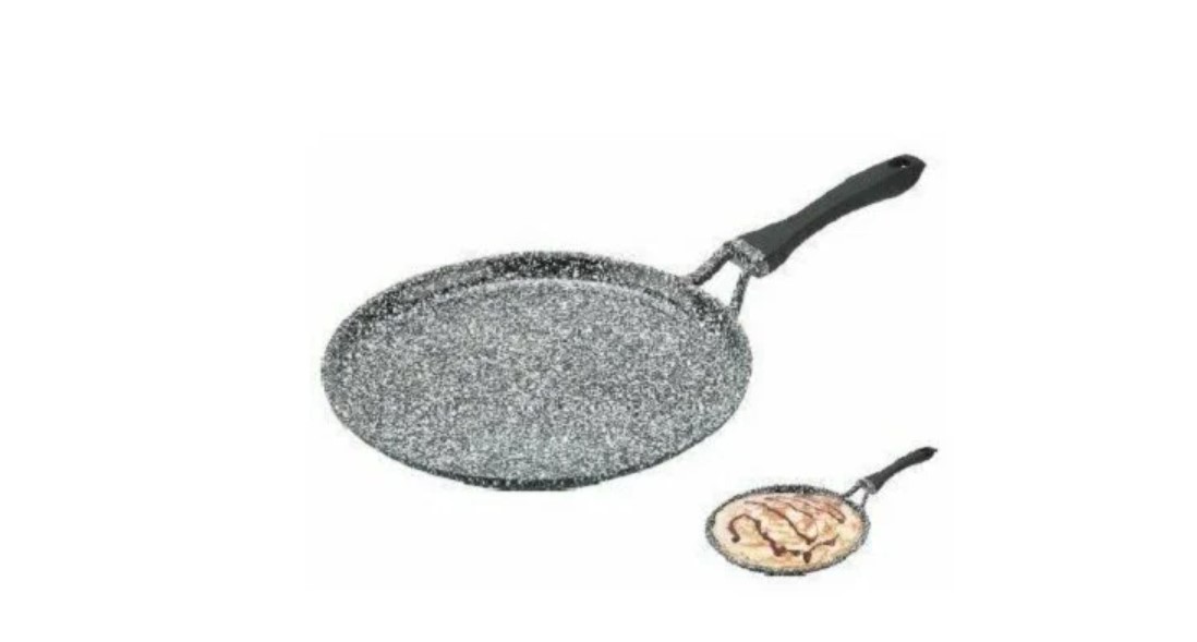 Сковорода изготовлена из алюминия, который является хорошим проводником для тепла. Поэтому дно сковороды равномерно нагревается за считанные секунды. Сковорода имеет внутреннее мраморное антипригарное покрытие - экологически безопасное, легкое в использовании, быстро нагревается и позволяет использовать минимум масла.