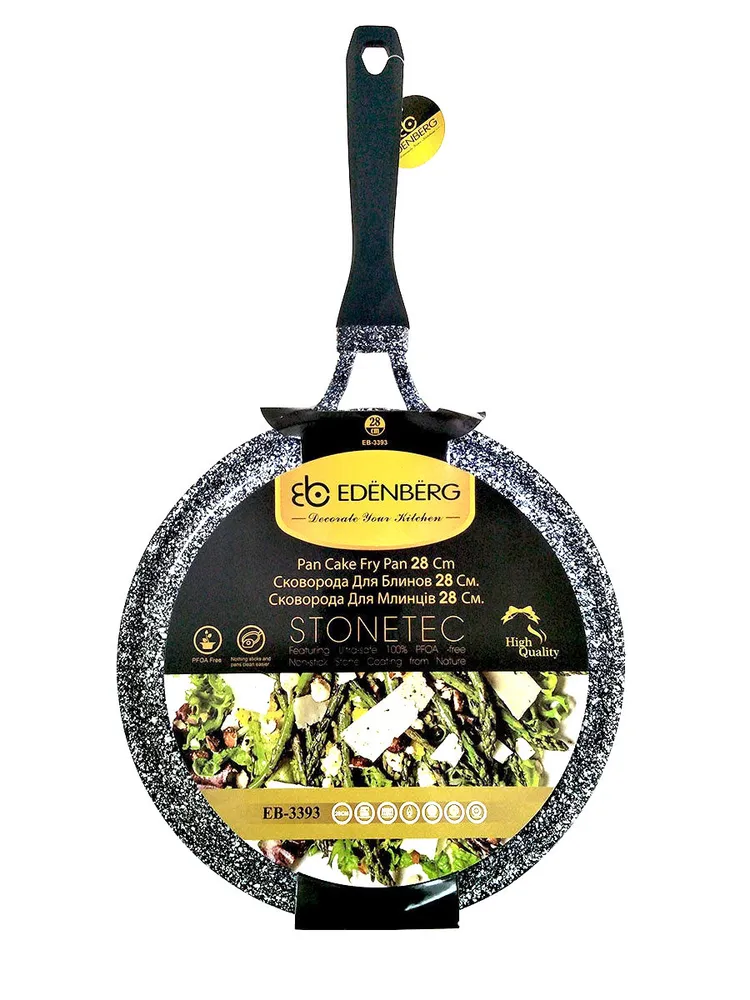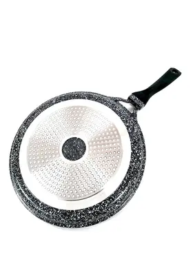 Блинная сковорода станет незаменимым помощником на кухне. Данное изделие выполнено из высококачественного материала, который не поддаётся коррозии и отвечает всем требованиям качества с мраморным покрытием. Корпус имеет хорошие защитные качества от царапин. Длинная эргономичная ручка не нагревается, благодаря чему Вы легко сможете снять посуду с огня, когда пища будет готова. Дно прогревается быстро и равномерно распределяет тепло – блины приготовятся вкусно. Сковороду можно использовать на всех видах плит, включая индукционные.