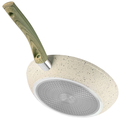 материал ручки: бакелит; диаметр ферромагнитной вставки - 16 см; эргономичная ручка с покрытием Soft Touch не нагревается и не скользит; внутреннее 4-х слойное антипригарное покрытие Pfluon; подходит для всех видов плит, включая индукционные
