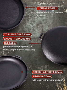 Литая чугунная посуда изготовлена по традиционной технологии литья чугуна в кокиль. Общепризнанно посуда из чугуна является лучшей для приготовления пищи. Она аккумулирует и выделяет тепло на протяжении длительного периода времени. Экологически чистая, естественная среда позволяет приготовить максимально насыщенные и вкусные блюда.