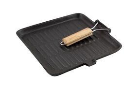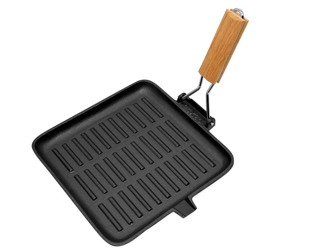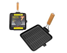 Сковорода-гриль чугунная с деревянной складной ручкой,