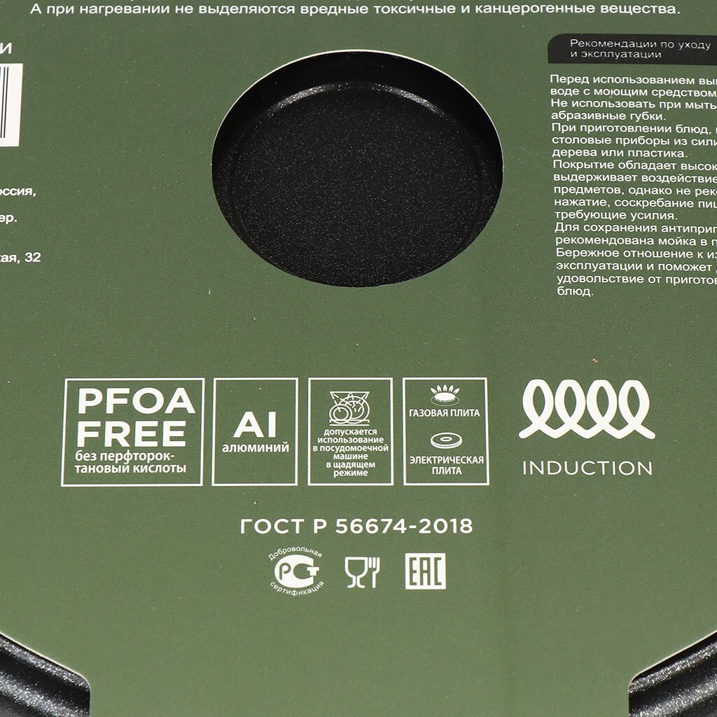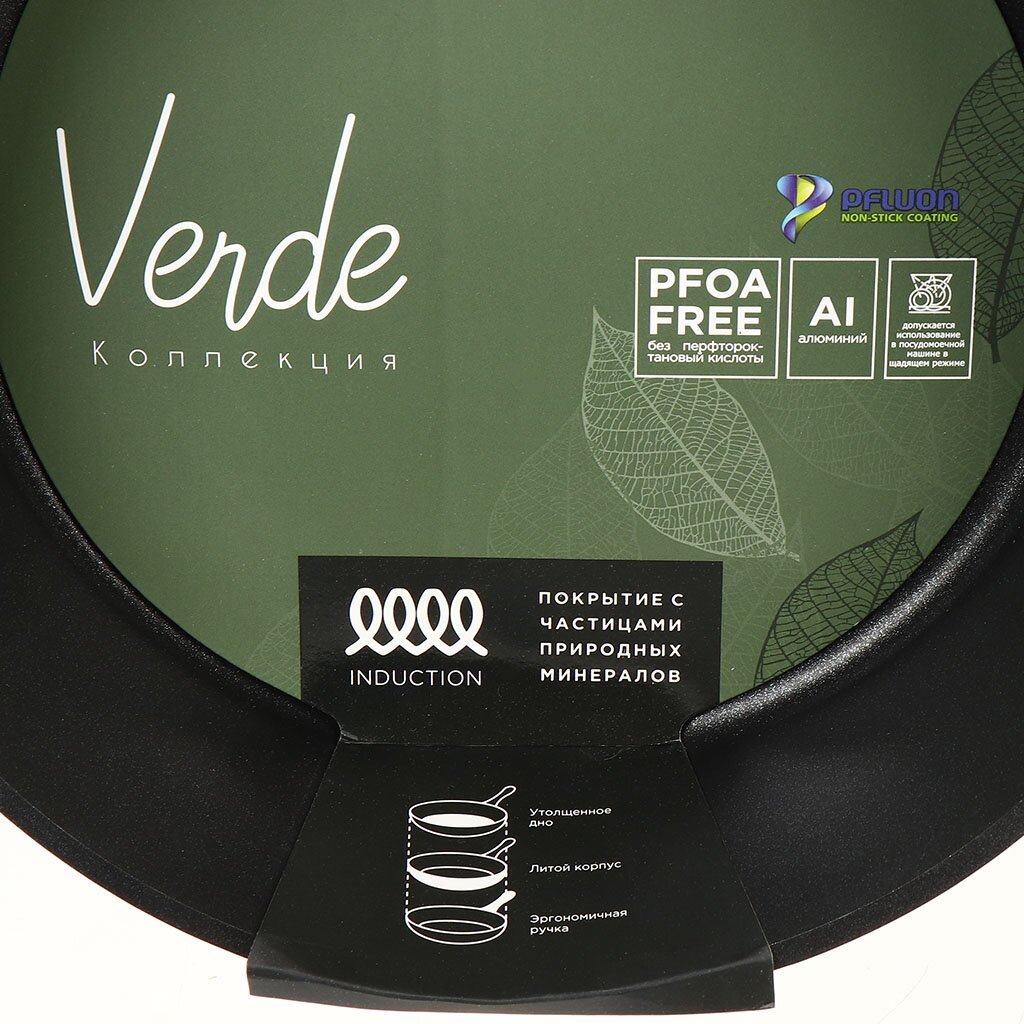 Заявленным качествам отвечает сковорода Гурман Verde. Главной отличительной особенностью серии является использование экологически чистого антипригарного покрытия с частицами природных материалов, не содержащего PFOA.