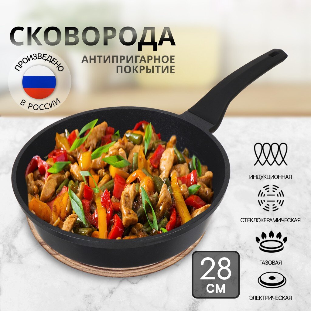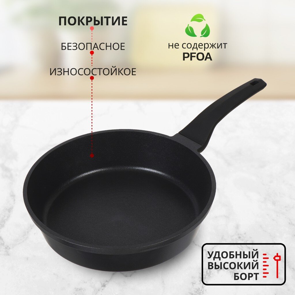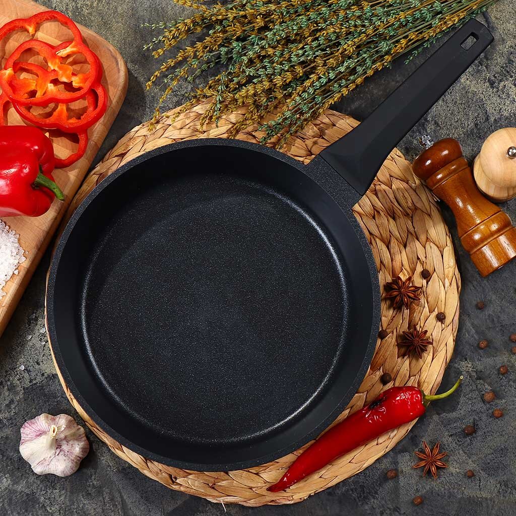Выполненная из литого алюминия сковорода Гурман Verde благодаря быстрому нагреву поспособствует сокращению времени приготовления пищи и экономии энергии. Антипригарное покрытие сковороды при термической обработке не выделяет вредных химических веществ, порадует вас прочностью и долговечностью.