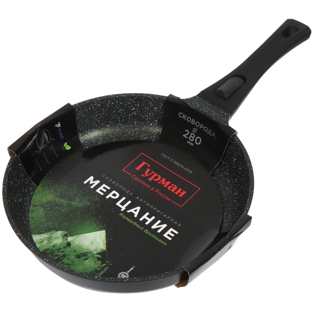 Сковорода выполнена литьем вручную из пищевого алюминия и имеет сверхпрочное семислойное антипригарное покрытие, безопасное для здоровья. Антипригарное покрытие обладает высокой прочностью к истиранию, что увеличивает срок службы сковороды в 5 раз. Форма сковороды обеспечивает устойчивость к деформации при длительном использовании. Дно оптимальной толщины 5 мм способствует равномерному распределению тепла для наилучшего приготовления ваших блюд. Сковорода имеет удобную ручку, которая не нагревается при эксплуатации. Посуда легко и быстро моется благодаря гладкой непористой поверхности. Сковорода не содержит PFOA, при нагревании не выделяются вредные токсичные и канцерогенные вещества.