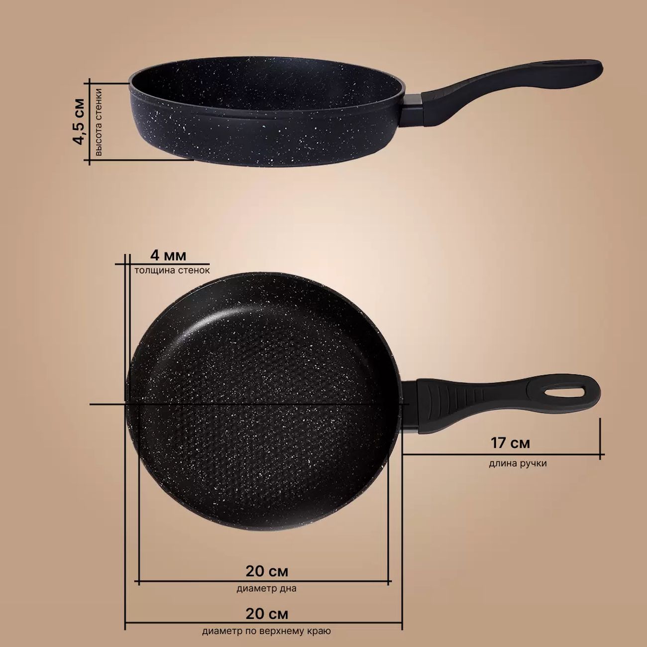- Антипригарное мраморное покрытие