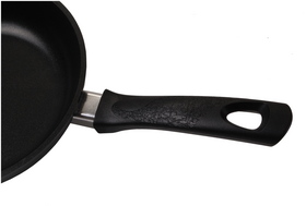 ненагревающаяся съемная ручка из бакелита; высокая теплопроводность и эргономичность; легкость мытья; возможность использования минимального количества жира; длительное сохранение тепла