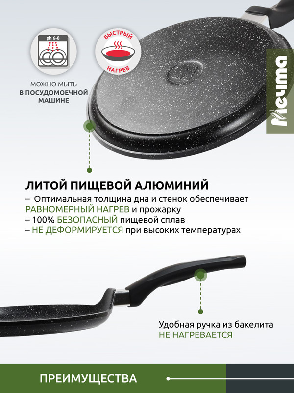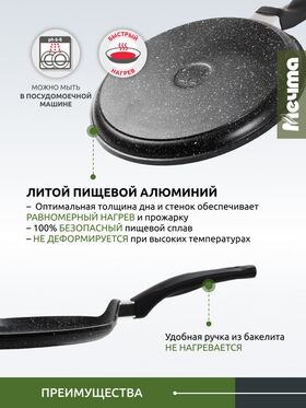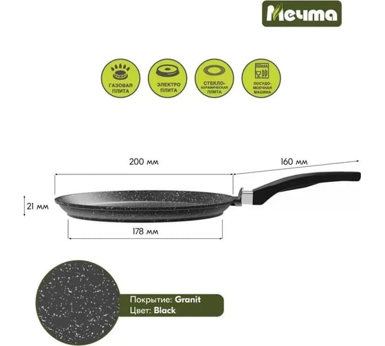 Блинная сковорода Мечта 20 см с антипригарным покрытием гранит black 10802 предназначена для домашнего использования.