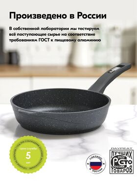 Сковорода линия Гранит с антипригарным покрытием Greblon, которое является полностью безвредным для вашего здоровья при готовке ваших любимых блюд.
