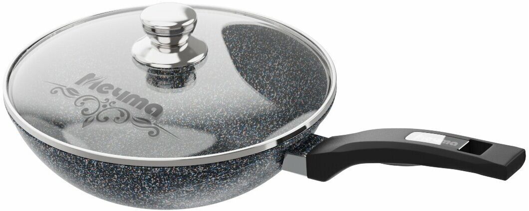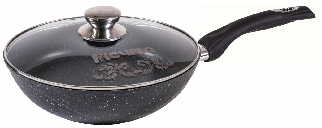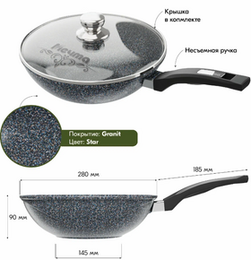 Сковорода ВОК, со съемной ручкой и стеклянной крышкой с078802 отлично подойдет для приготовления разнообразных блюд.