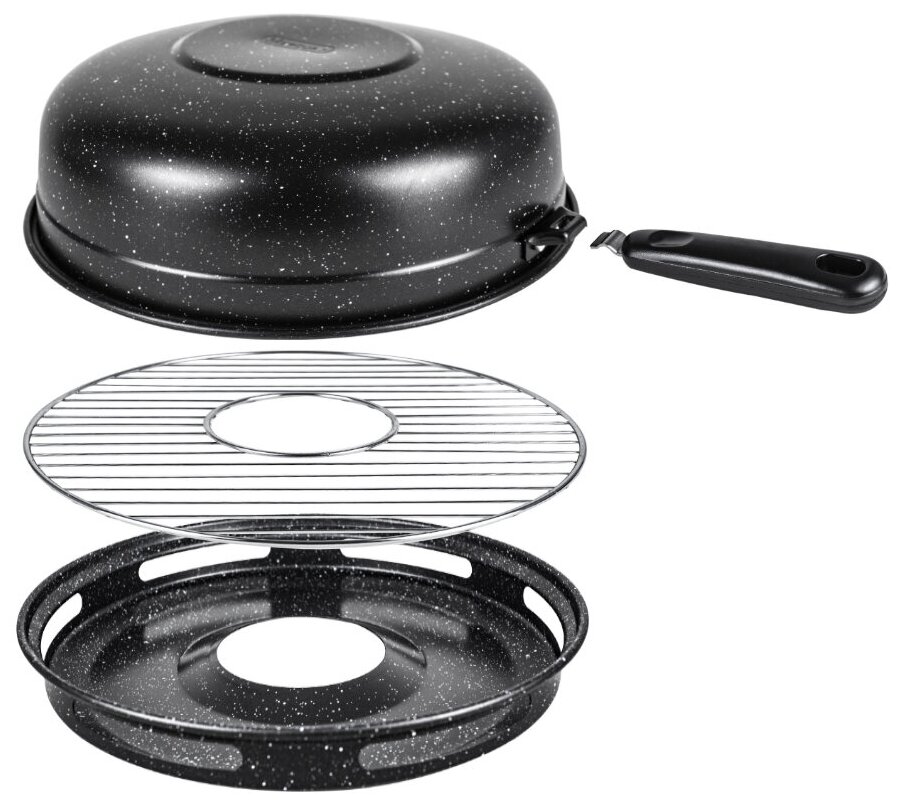 сковорода, поддон, решетка для гриля, крышка, съемная бакелитовая ручка