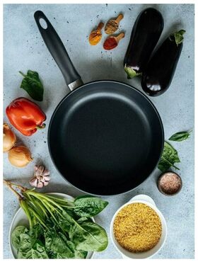 Классическая сковорода из литого алюминия с высокими бортами в стильных цветовых решениях! 3х-слойное высококачественное антипригарное покрытие позволяет готовить без масла или с минимальным его количеством, сохраняя натуральный вкус продуктов. Покрытие не содержит PFOA, поэтому безопасно для человека. Долговечная И надежная: ресурс сковороды более 2500 условных циклов приготовления, а антипригарные свойства не теряются даже при внешних механических повреждениях. Правильное соотношение толщины стенок и дна обеспечат равномерный нагрев и длительное сохранение тепла. Именно такой режим позволяет сохранить питательные и полезные свойства. Продукты НЕ пригорают и сохраняют свой вкус! Удобная ручка из бакелита НЕ нагревается. Сковорода многофункциональна, надежна и удобна. Подходит для жарки, тушения, пассировки. В ней приятно готовить и просто ухаживать! Посуда легко моется и подходит для всех типов плит, кроме индукционных.