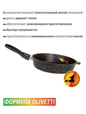 Сковорода-гриль Olivetti идеально подойдет для приготовления любых видов блюд из мяса, птицы, рыбы, грибов или овощей. За счет уникального покрытия, можно готовить практически без добавления масла. Благодаря съемной ручке идеально подойдет для приготовления различных блюд в духовке.