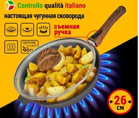 сковорода 26 см, стеклянная крышка, съемная ручка