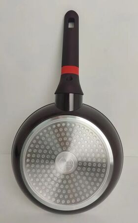 Сковорода из кованного алюминия с антипригарным покрытием и индукционным дном.