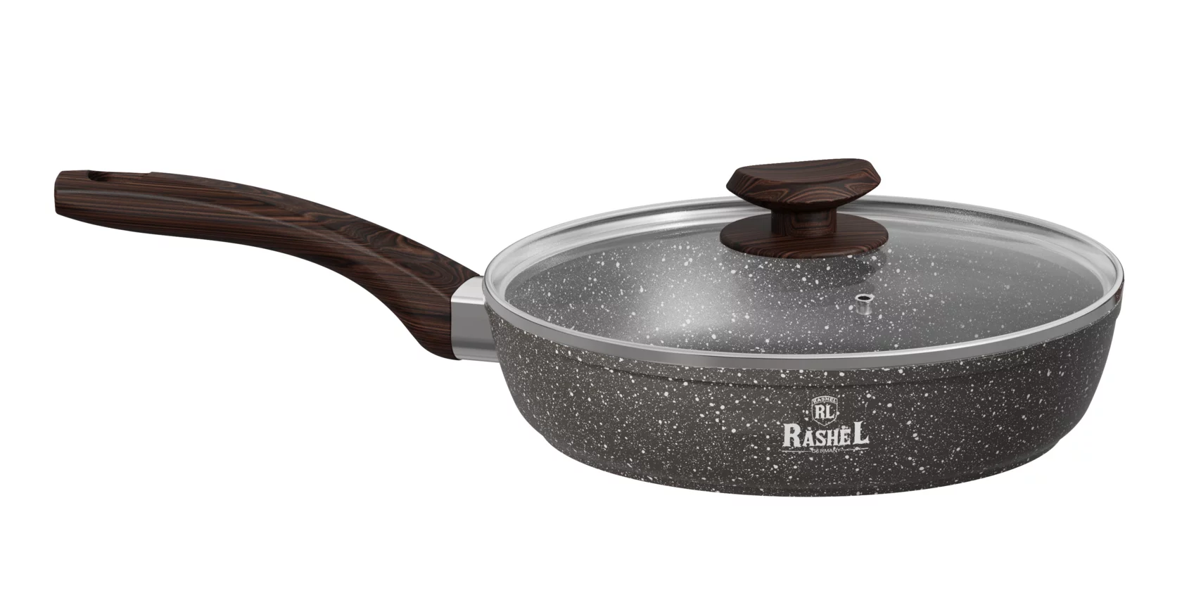 Сковороды ТМ RASHEL выполнены из высококачественного пищевого алюминия.Внутреннее и внешнее сверхпрочное, гранитное, антипригарное покрытие ТИТАН&ГРАНИТ.