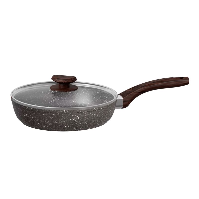 Сковорода литая с индукционным дном, стеклянная крышка, коричневый гранит