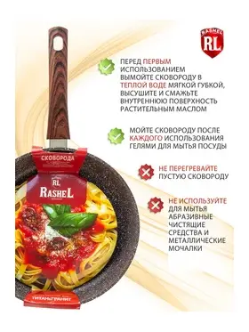 Сковорода 26 см RASHEL ТИТАН&ГРАНИТ: Превосходство в Кулинарии. Эта глубокая сковорода из литого алюминия с гранитным антипригарным покрытием RASHEL ТИТАН&ГРАНИТ – идеальное решение для гурманов и опытных поваров.