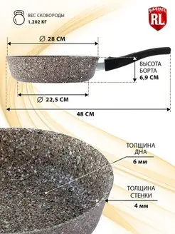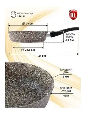 Сковороды ТМ RASHEL выполнены из высококачественного пищевого алюминия. Внутреннее и внешнее сверхпрочное, гранитное, антипригарное покрытие ТИТАН&ГРАНИТ.