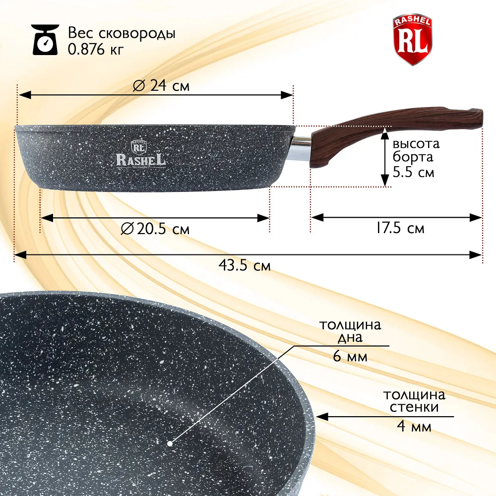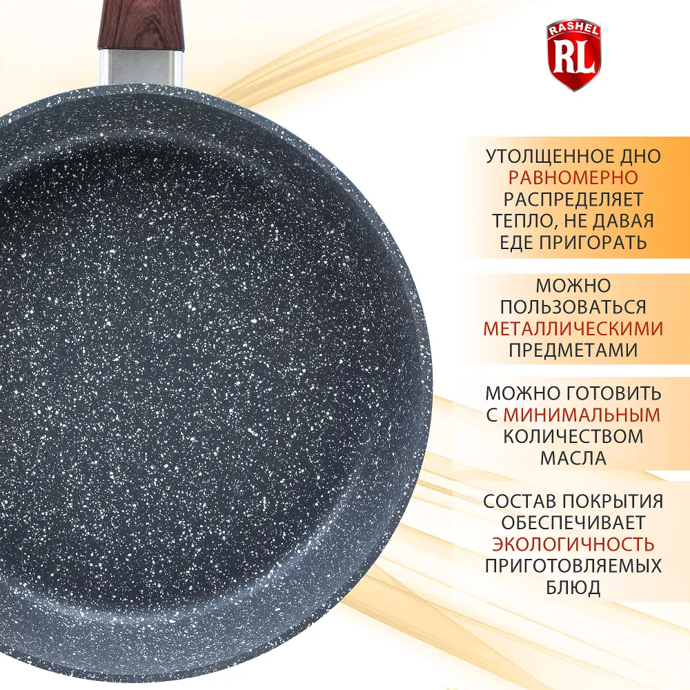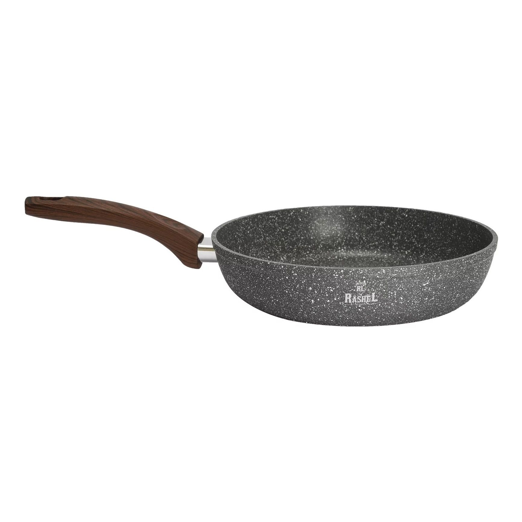 Сковорода глубокая из литого алюминия с гранитным антипригарным покрытиемТИТАН&ГРАНИТ. Сковороды торговой марки ""RASHEL"" выполнены из высококачественного пищевого алюминия. Внутреннее и внешнее сверхпрочное, гранитное, антипригарное покрытие ТИТАН&ГРАНИТ.