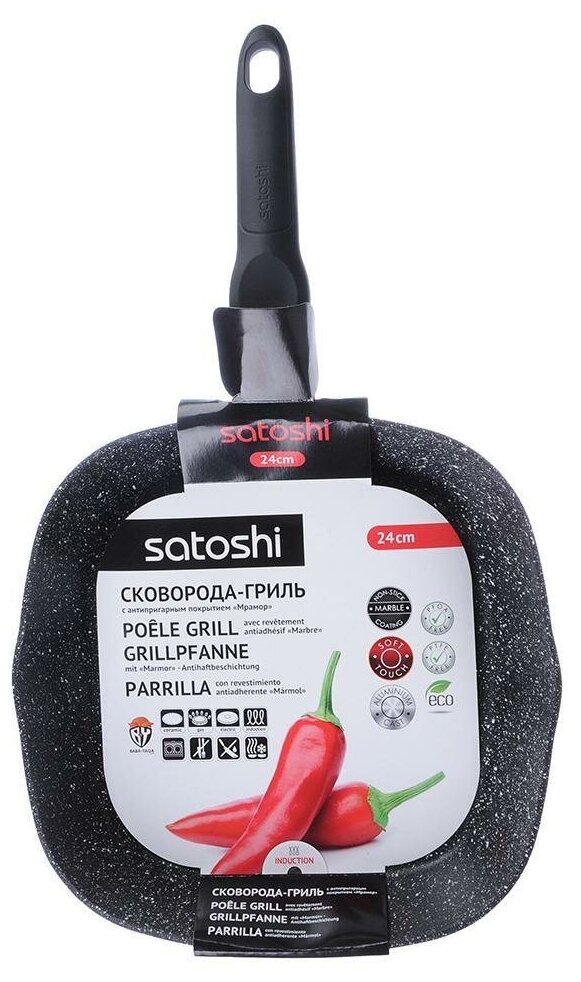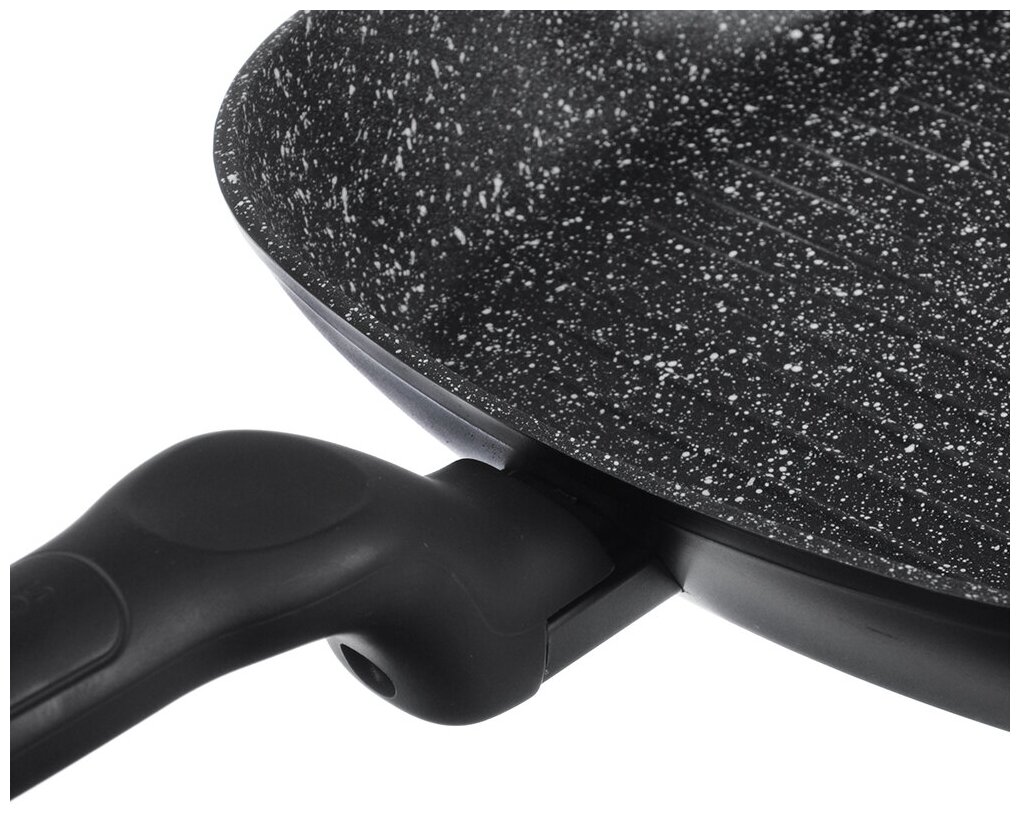 ненагревающаяся ручка, Антипригарное покрытие мрамор/ Термостойкое покрытие/ Эргономичная ручка из бакелита с силиконовым напылением