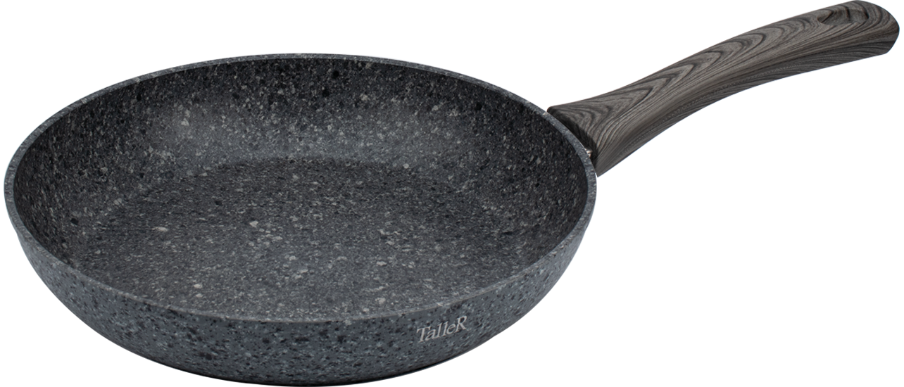 Трехслойное антипригарное покрытие не содержит PFOA и позволяет готовить пищу с минимальным количеством масла.