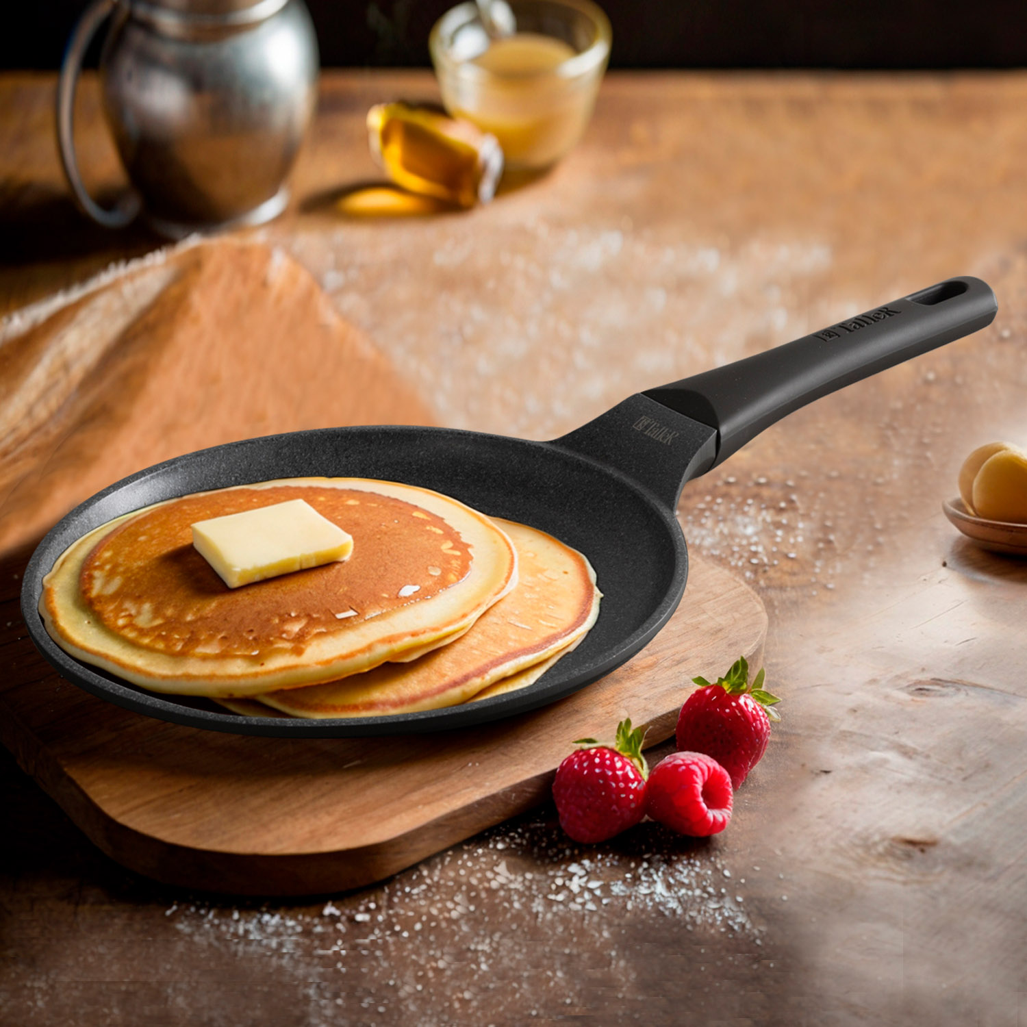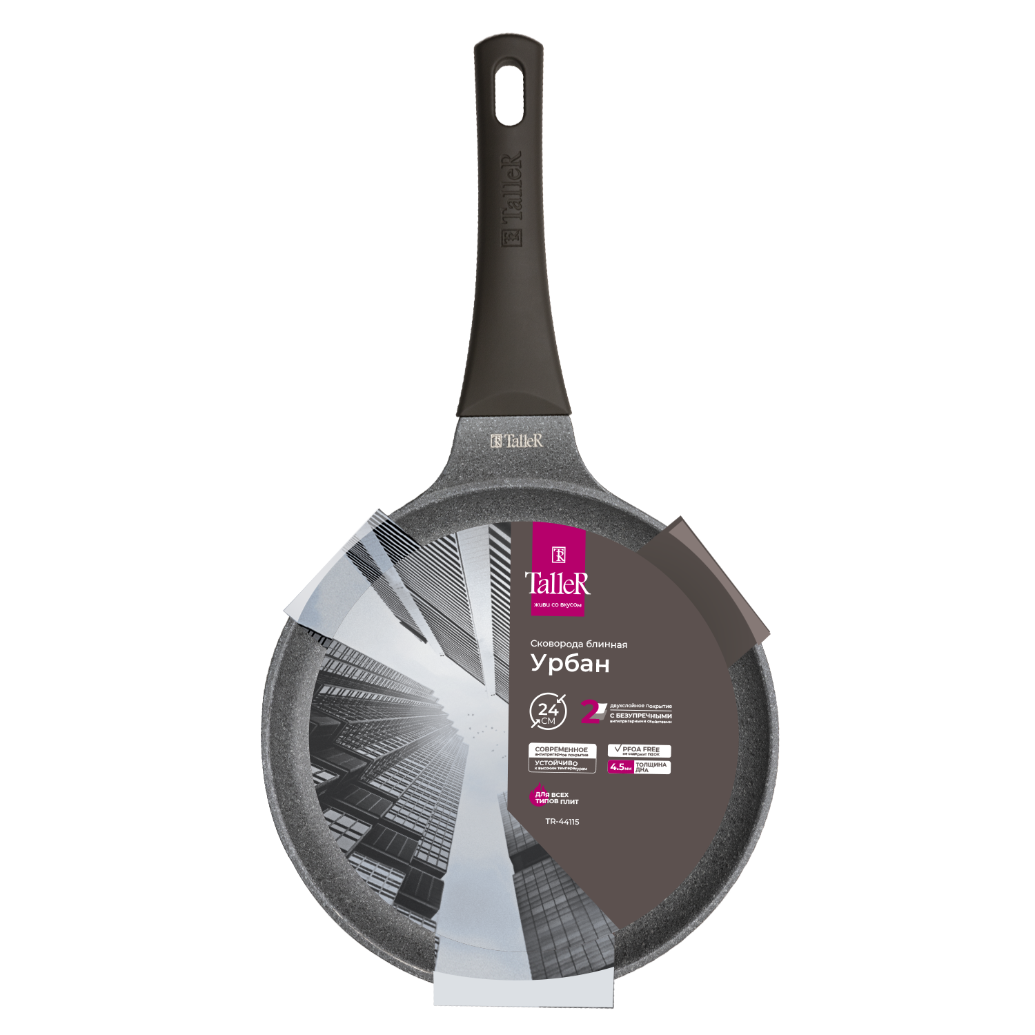Характеристики Материал — алюминий Диаметр, см — 24 Толщина дна, мм — 4,5 Диаметр дна, см — 18,6 Высота, см — 2,1 Индукционная плита — подходит Цвет — серый, темно-коричневый