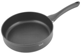 Изготовлена из кованого алюминия с антипригарным покрытием Whitford Xylan Plus. Бакелитовая ручка не нагревается при использовании конфорки, не превышающей диаметр дна сковороды. Материал ручки - бакелит с soft-touch покрытием.