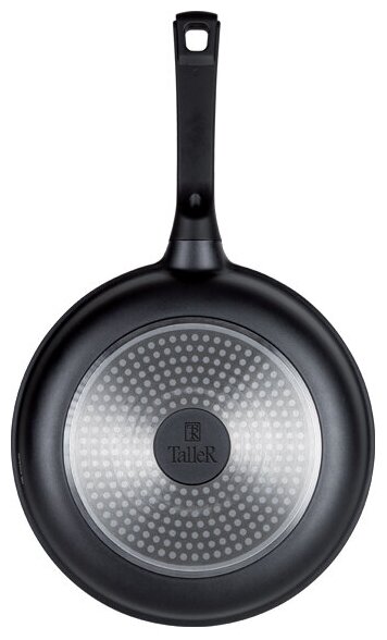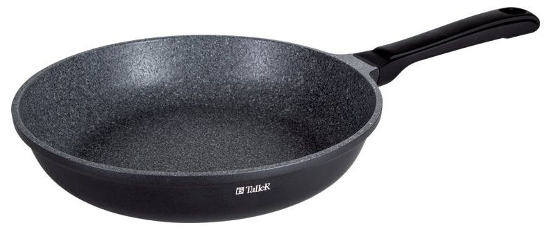 Сковорода из литого алюминия TR-44254. Внешнее покрытие устойчиво к высоким температурам и загрязнениям и долго сохраняет превосходный внешний вид. Трехслойное немецкое рифленое антипригарное покрытие Greblon C3, стилизованное под гранит.