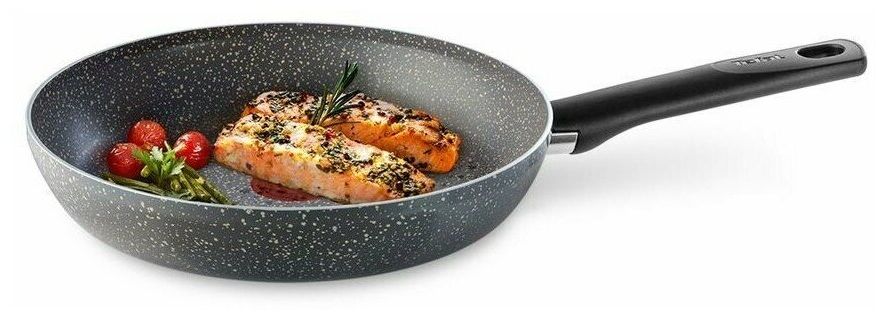 Сковороды Tefal Natural Cook – отличный повод влюбиться в здоровые и полезные блюда без добавления лишнего масла. Антипригарное прочное покрытие Mineralia и продуманные детали конструкции обеспечат потрясающий результат на любой вкус: жареные овощи, рецепты азиатской кухни, омлеты, котлеты для бургеров, мясо и многое другое. Готовьте здоровые блюда без добавления масла с посудой серии Natural Cook от Tefal. Сковорода подходит для всех типов плит, кроме индукционных. Посуда оснащена специальным индикатором Thermo-Signal, который меняет цвет, когда сковорода нагрелась до оптимальной температуры и можно начинать готовить. Благодаря равномерному распределению тепла посуда обеспечивает не только здоровые, но и сочные блюда, которые понравятся абсолютно каждому. Прочное антипригарное покрытие для приготовления блюд с минимальным количеством масла. Уникальный индикатор температуры Thermo-Signal вовремя подскажет, когда посуда нагрелась до оптимальной температуры для начала приготовления. Посуда подходит для использования на газовых, электрических, стеклокерамических плитах. Tefal всегда следует бескомпромиссным стандартам качества, в том числе и собственным, гораздо более строгим, чем действующие нормы – именно поэтому в антипригарном покрытии не применяется PFOA, кадмий и свинец.