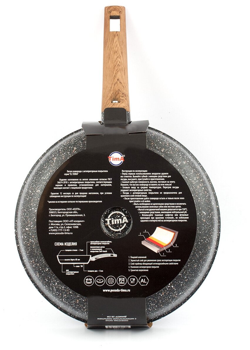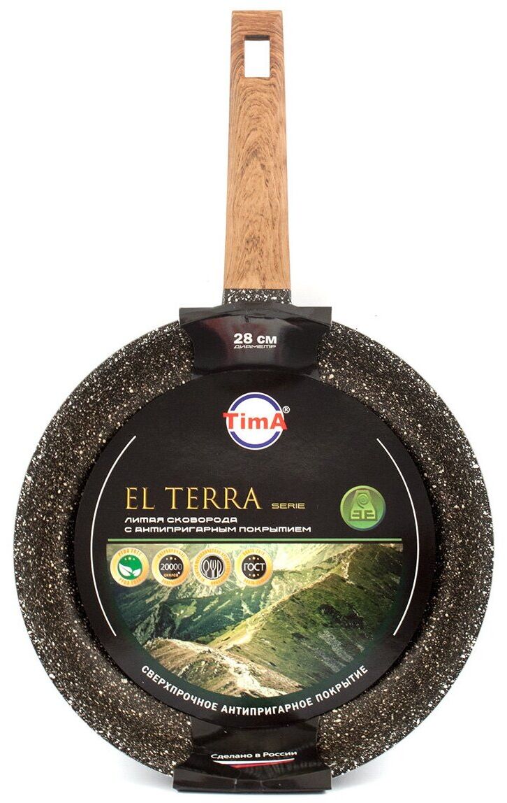 Сковороды серии «El Terra» торговой марки «TimA» подходят для всех видов плит, кроме индукционных, имеют высочайшие рабочие характеристики и идеально подходят для частого использования, они необычайно легки в эксплуатации и очень легко моются.