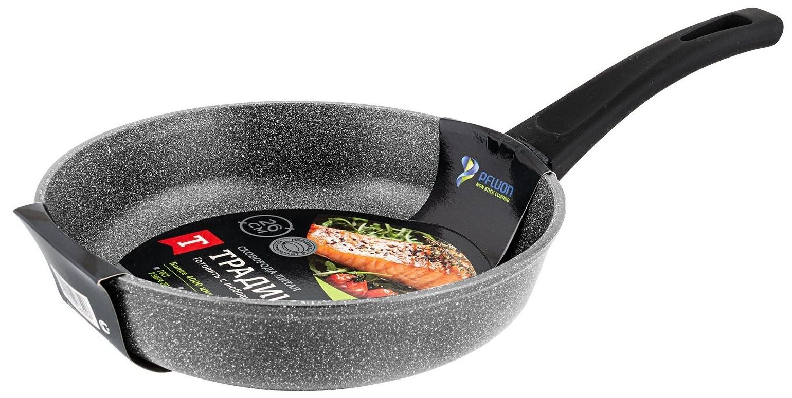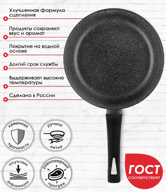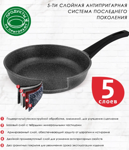 За счет антипригарного покрытия пища не пригорает даже при небольшом количестве масла.