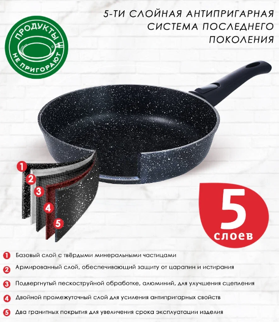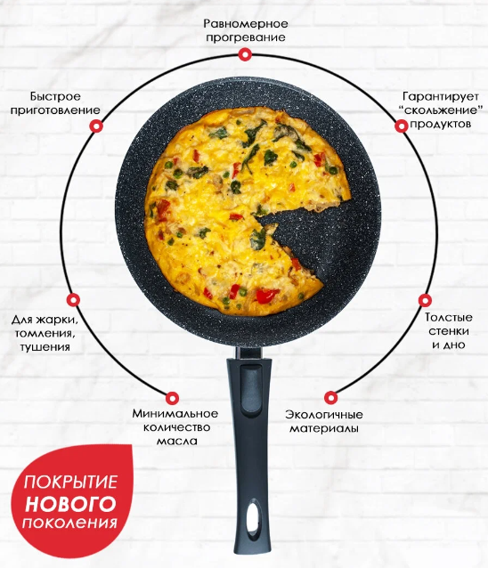 За счет антипригарного покрытия пища не пригорает даже при небольшом количестве масла.