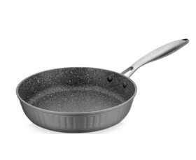 Сковорода Шармант из кованого алюминия размером 20*4,8 см. Толщина дна 3,2 мм, диаметр дна 16,9 см, диаметр индукции 15 см. Ручка из нержавеющей стали на клёпочном креплении. Внутреннее двухслойное антипригарное покрытие Xynflon. Можно пользоваться деревянными, силиконовыми и пластиковыми лопатками. Внешнее термостойкое покрытие. Работает на любых типах плит. Пригодна для мытья в посудомоечной машине.