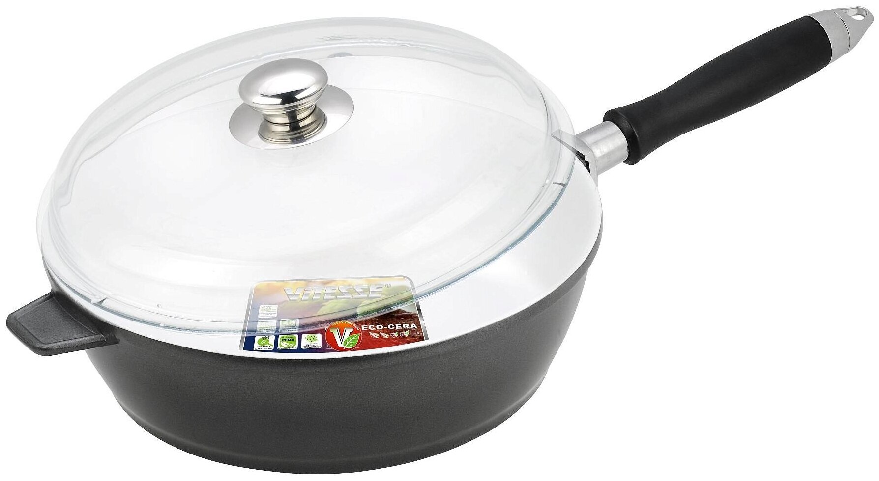 материал крышки: стекло; материал ручки: бакелит; марка антипригарного покрытия Eco-Cera