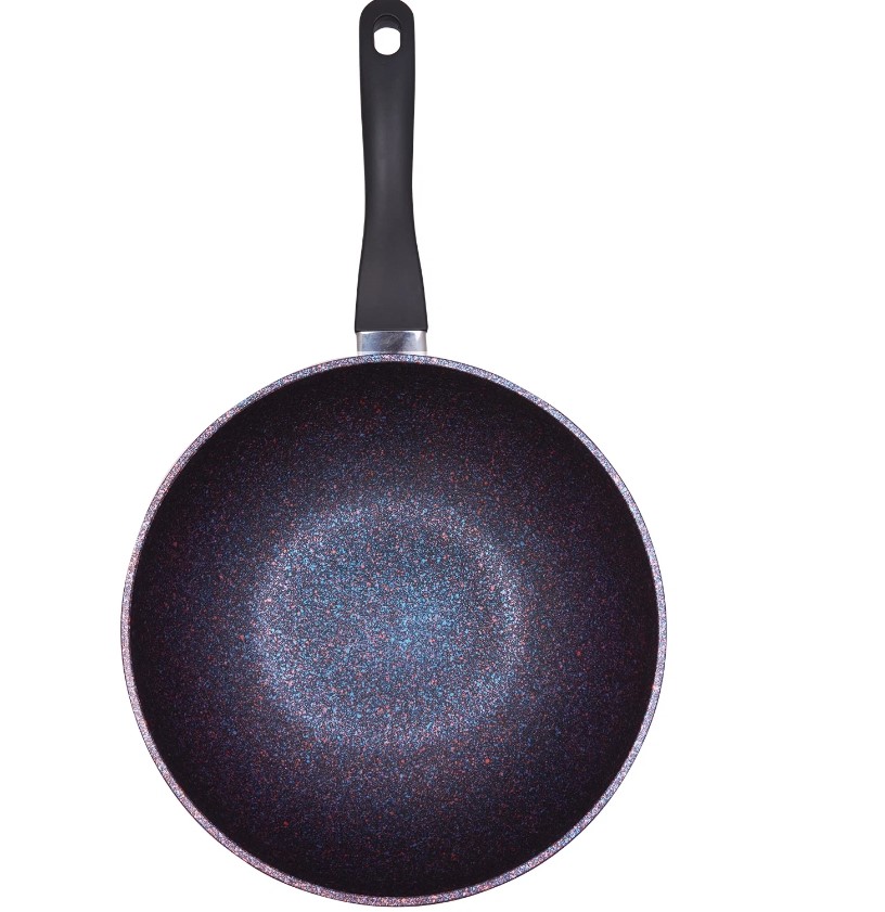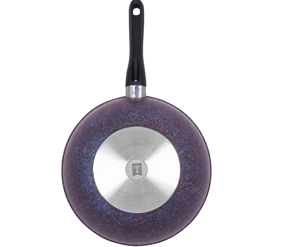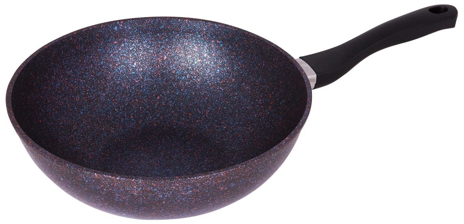 Благодаря уникальной форме сковороды WOK процесс приготовления пищи занимает меньше времени. За счет того, что время готовки и термической обработки продуктов минимально, они сохраняют максимальное количество полезных свойств, микроэлементов. Приготовление пищи с использованием сковороды WOK требует постоянного перемешивания, благодаря этому блюдо впитывает меньше жиров. Это значит, что еда идеально подходит для тех кто ведет здоровый образ жизни и следит за своим питанием. В серии Сапфир проточенное дно, ускоряет прогрев и улучшает теплопроводные свойства посуды за счет увеличения площади прогреваемой поверхности. Обеспечивает равномерное распределение и лучшее сохранение тепла. Сковорода абсолютно безопасна для здоровья, на ее поверхность нанесено высококачественное минеральное покрытие на водной основе.