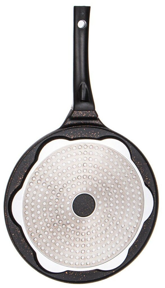 Сковорода с мраморным антипригарным покрытием диаметр 26.5 см предназначена для приготовления пищи.